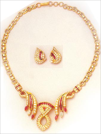 Previous Picture, Code KJGJC 2921Gold 22 ktWeight 120 gmsEmerald 27 ctRuby 7 ctDiamond round wt 1ct   Next Picture, Code KJGJC 2923Gold 22 ktWeight 35 gmsRuby 4 ctCubic Zircons 10 ct
